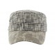 Cette casquette armée grise est confectionnée en tissu mélangé lin et polyester pour un rendu vintage sans être froissé et sans démangeaison . Le top de cette casquette armée homme et femme est en tissu à rayures grise et beige, la visière curved est également à rayures grise et beige avec des formes géométriques en damier. Cette casquette army tendance dispose d'un strap de réglage de la taille avec une boucle métallique grise.