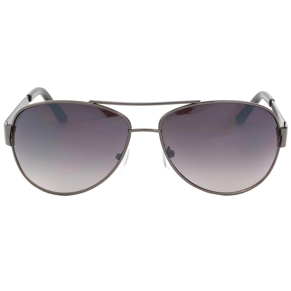 Lunette de soleil Fashion de marquer Eye Wear modèle Tsar Gris foncé. Ces lunettes de soleil Homme et Femme ont le style intemporel des lunettes aviator avec les grands verrs ovales teintés Noir Gris. La monture de ces oslaires pas cher est métallique, les cambres sont en plastique noir.