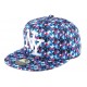 Snapback années 70 bleu et rose marque Hip Hop of Honour. Cette casquette skate grapshime vintage 70s de petits triangles bleus, roses et blancs style tendance efficace et affirmé dans l'esprit pyschedelique. Le NY de New York est brodé en blanc sur le top de la snapback. La taille ajustable de cette casquette rétro moderne est une languette de plastique blanc.