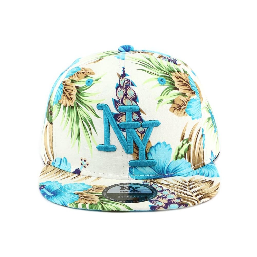 Snapback Enfant fleurs bleues sur fond beige NY - Casquette New York floral pour garçon et fille à paryir de 7 ans collection Hip Hop of Honour