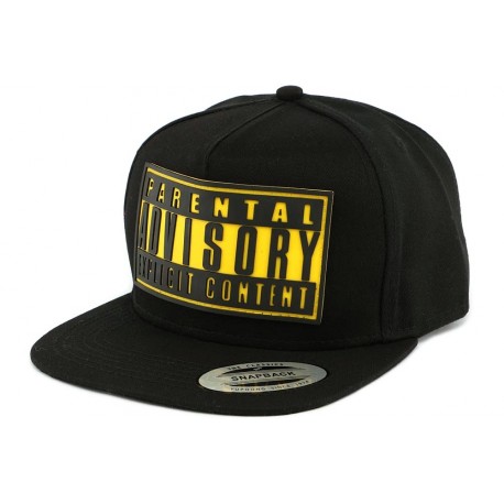Snapback Noire Parental Advisory en patch jaune - Snapback stylé homme et Femme explicit Content collection Hip Hop Honour