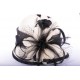 Chapeau cérémonie en sisal Ecru et Noir modèle Delfy, cette petite cloche rétro est garni d'une fleur plume et de lien de sisal. Cette petite forme sera l'idéal pour vos mariages, cocktails ou autres céremonies.