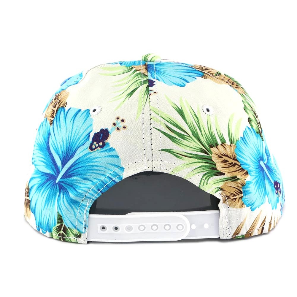Snapback Beige imprimé fleurs bleues avec pins triangle doré NY - Casquette NY floral mode été par Hip Hop of Honour