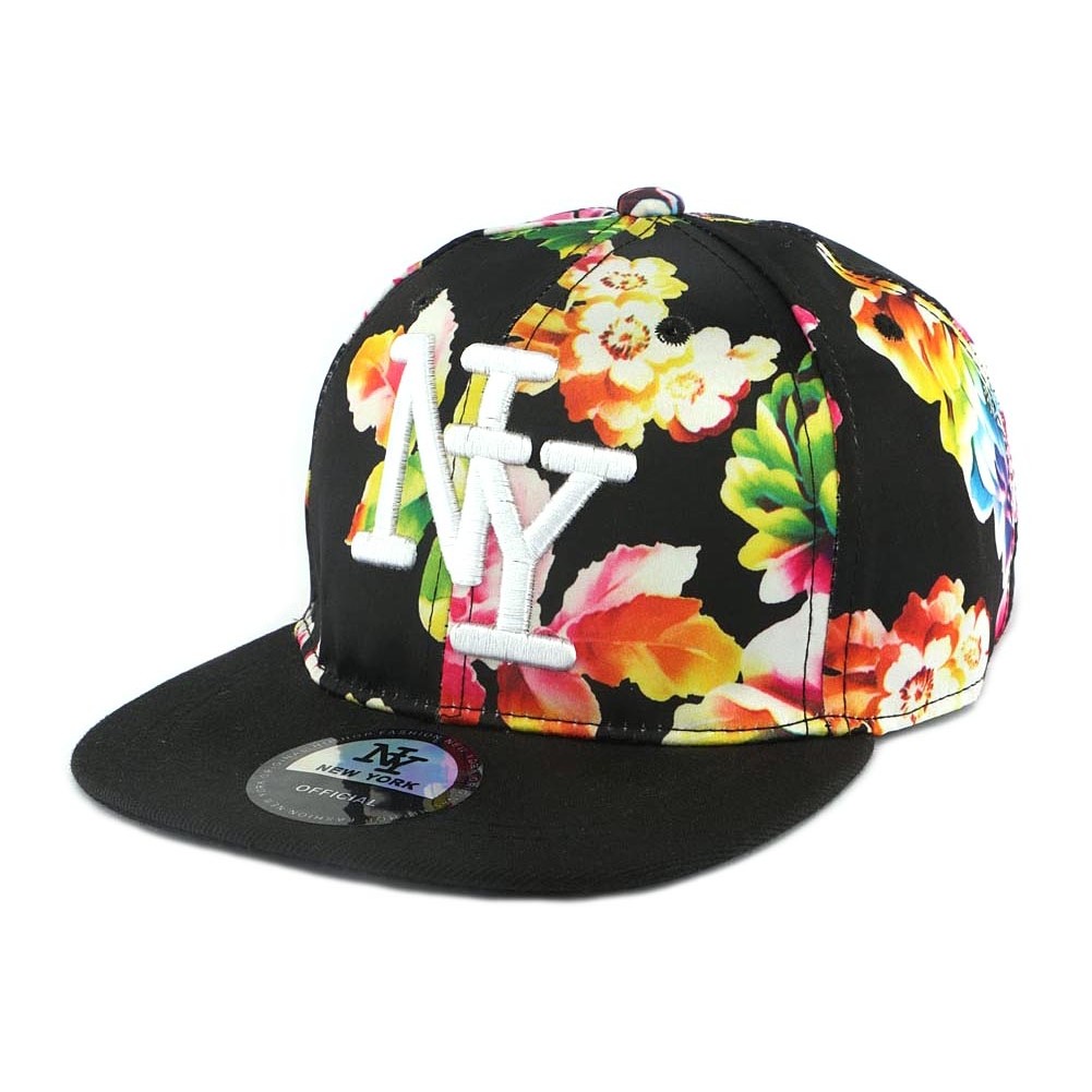 Cette casquette NY enfant est fabriquée en tissu noir à motifs de fleurs oranges et rouges. Cette snapback garçon et fille est brodé du NY de Ne York en fils blancs façon 3D. La visière plate est noir uni en tissu gros grain, elle est agrémentée de l'autocollant NY Official à la mode streetwear. Cette casquette enfant ajustable dispose d'un snap de réglage en plastique noir souple et robuste fixé sur l'arrière.