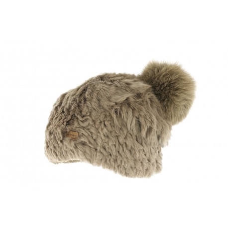Bonnet fourrure lapin marron taupe Bacall collection Herman, bonnet pompon femme façon luxe à la mode légendaire