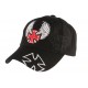 Casquette Biker forme baseball, cette casquette est noire avec une visière curve, sur le devant nous retrouvons une croix de malte rouge avec des ailes de chaques cotés, sur la visière curve nous avons une broderie blanche de corix de malte. A l'arrière nous avons l'attache de réglage pour la taille.