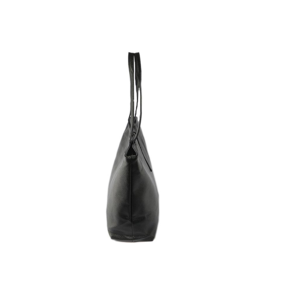 Looké et pratique, ce sac cabas femme en simili cuir noir de la marque Léon Montane référence Molly offre une belle dimmension ni trop petit ni trop grand pour ranger ses accessoires et livres tout en arborant une allure chic. Ce sac à main noir femme a pour dimensions: 48 cm haut, 28 cm long et 14 cm large. L'intérieur est doublé en toile noire, il montre sur ses côtés 2 pochettes Zip pour bien ranger ses effets. Léger et confortable, ce sac cabas pas cher porté épaule se ferme par une fermeture zip. Un porte monnaie du même cuir synthétique noir est lié au sac par un ruban de cuir pour éviter tout oubli ou perte.