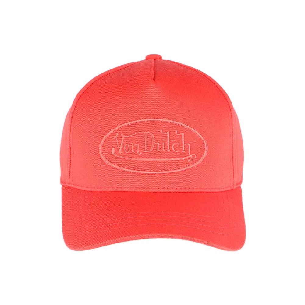 Ligne épurée et couleur chaude, cette casquette americaine de marque Von Dutch est tendance fashion avec ce coloris corail orange sanguine. Cette casquette de baseball homme et femme est fabriquée en toile coton finement tissée, le front est orné du patch ovale au logo Von Dutch stylisé et orange corail ton sur ton. Typique look US, cette casquette curve présente la visière courbée et le snap d'ajustement de taille fixé à l'arrière.
