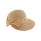 Chapeau casquette paille beige avec gros noeud en toile sur l'arrière, chapeau femme été Vylla collection Herman