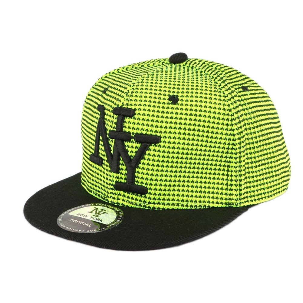 Casquette enfant Ny de la marque Hip Hop of honour, cette casquette est en tissu imitation sportwear identique a celui des baskets modes, ce tissu est jaune fluo et noir. Sur le devant de cette casquette enfant NY on trouve le logo NY broder noir. A l'arrière nous avons l'attache de réglage pour la taille. Enfant de 7 à 11 ans.