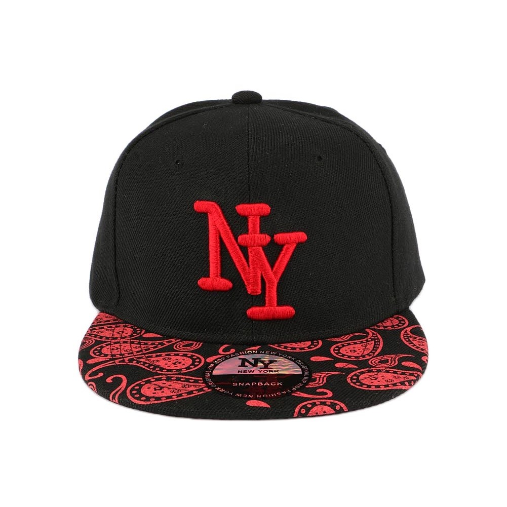 Casquette NY enfant rouge et noire de la marque Hip Hop of Honour modème Paisley. Look streetwear sobre, cette snapback enfant dispose d'une visière noire imprimée d'un motif à fleur esprit indien Paisley. Le NY de New York est brodé 3D en fil rouge. La taille de cette snapback destinée aux plus de 7 ans peut se regler par une languette discrète en plastique noir.