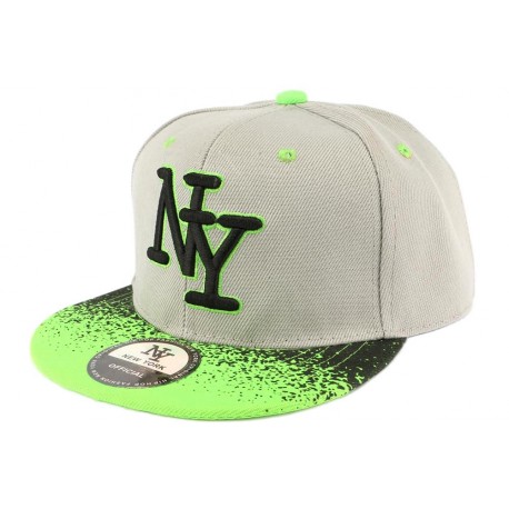 Snapback Enfant Grise et Verte marque Hip Hop Honour modèle Tag. Cette casquette NY fille et garçon présente une visière grise taguée vert, le top est gris et brodé des initiales NY de New York en noir avec le brod vert. La taille de cette snapback stylé pour les jeunes se règle par un snap gris.
