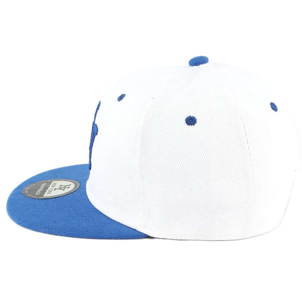 Casquette NY enfant blanche et bleu de la marque Hip Hop of Honour. Look intemporl et coloris flashy, cette snapback fille et garçon présente une calotte en beau tissu blanc, la visière est bleu avec le stick NY. Le logo NY de New York est brodé sur le top de la casquette en 3D et fils vert fluo. Destinée au plus de 7 ans, cette snapback stylé a un snap d'ajsutement de la taille en plastique.