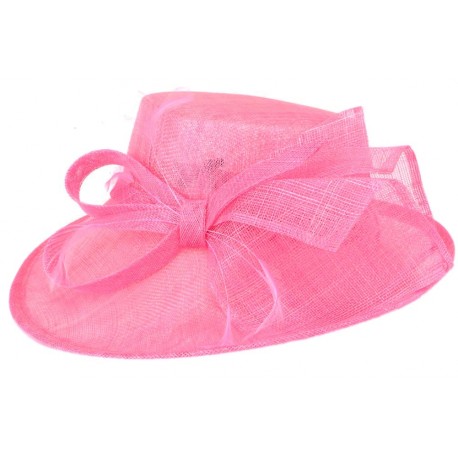 Chapeau Mariage de la marque Léon Montane modèle Abya, ce chapeau mariage est une capeline en sisal Rose. On retrouve un bord asymétrique relever sur un coté. Autour de la calotte nous avons une garniture de sisal avec des plumes et un noeud imitation chapelier. Taille unique.