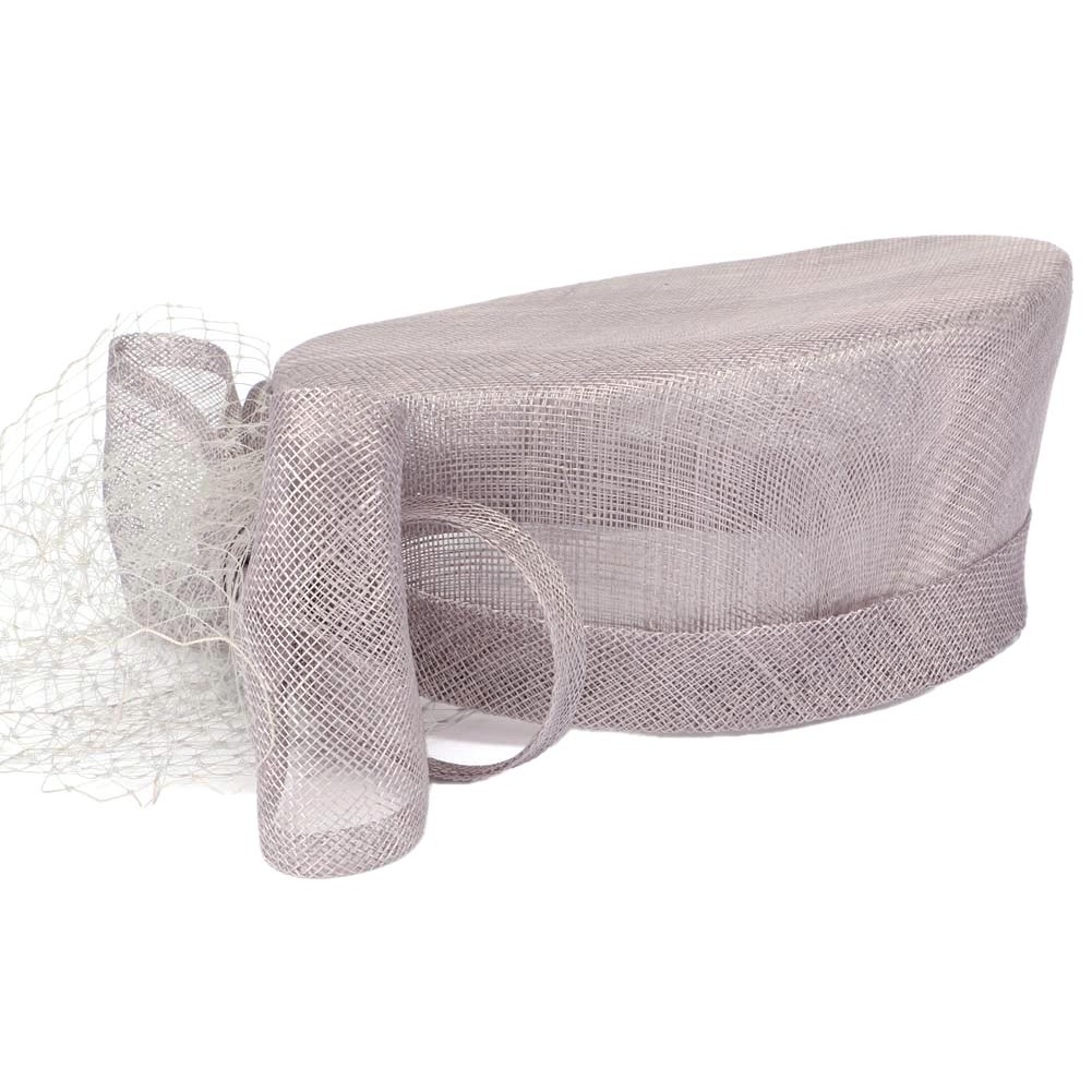 Chapeau de mariage de la marque Léon Montane modèle Kate en sisal gris silver, ce petit chapeau mariage est un calot en sisal. Ce chapeau est garni sur le coté avec un noeud en sisal et de la voilette. Ce calot mariage sera votre accessoire mode pour vos cérémonies.