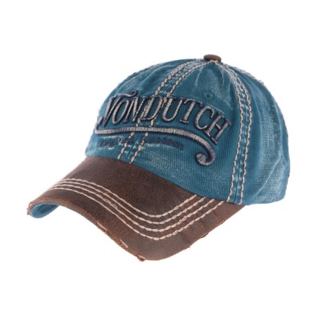 Casquette baseball Von Dutch bleu style retro référence Halton, casquette amerciaine vintage visière curve en cuir élimée, broderie Von Dutch façon calligraphiée pour homme et femme