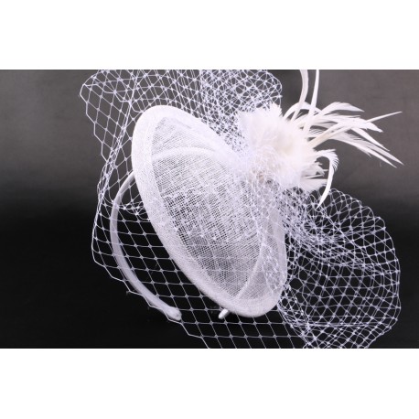 Nyls création nous propose le modèle Line en sisal blanchi, cette coiffe de mariée est garni d'une plume ainsi que de voilette.