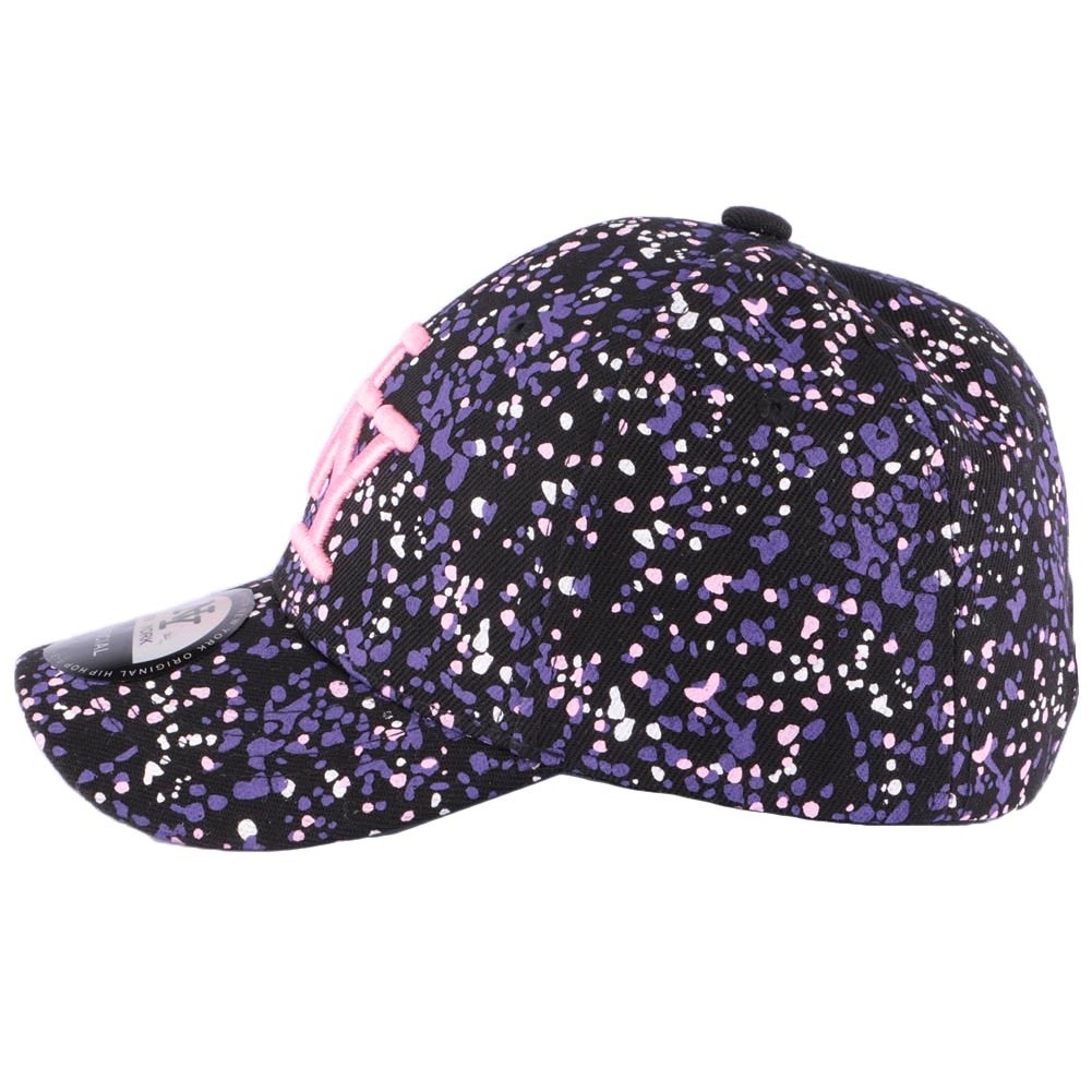 Casquette NY enfant noire à taguée violet et rose visière curve par Hip Hop Honour Grafty, casquette enfant tendance et streetwear garcon et fille taille 7 à 12 ans.