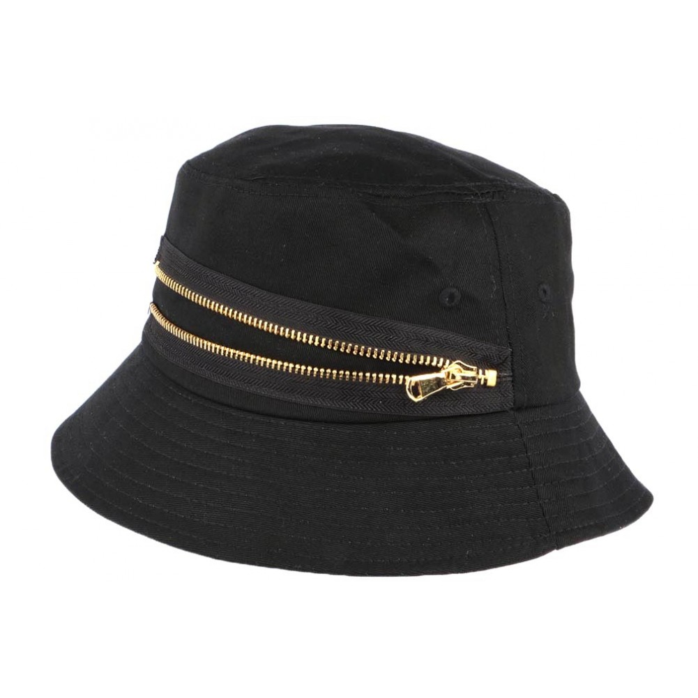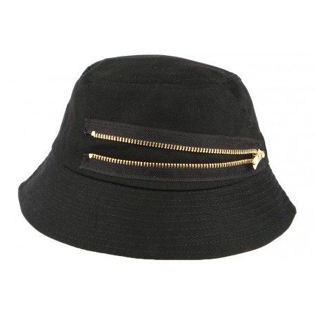 Chapeau bob femme et homme noir en tissu coton collection Hip Hop Honour, bob fashion avec fermeture éclair dorée Zip look streetwear