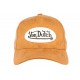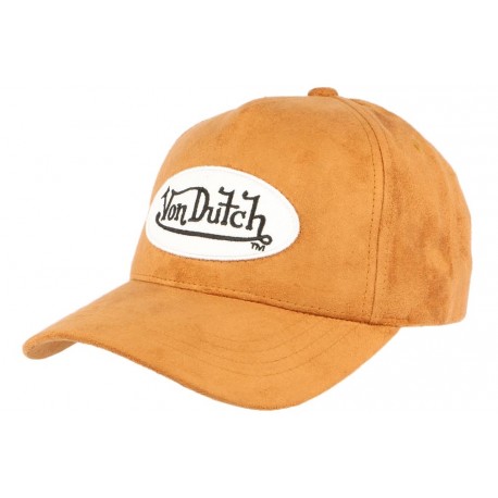 Casquette baseball Von Dutch marron clair modèle Suede, casquette americaine homme et femme avec visière curve esprit cuir de daim, patch logo Von Dutch noir et blanc.