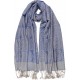 Echarpe pashmina homme et femme bleu et gris argent allure classe et lumineuse, grand foulard pashmina pas cher sélection Léon Montane référence Jaipur, tissé en fils de soie et pashmina douce. Taille: 200cm longueur, 70 cm largeur.