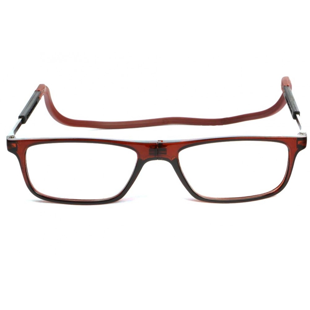 Lunettes de lecture tour de cou marrons classes à la large monture presbyte rectangle pratique et chic, Lunettes loupe aimantees homme et femme légères modèle Lapal Brown marque Presbello. Largeur monture: 137 mm, verres: 55 large mm sur 32 mm haut.