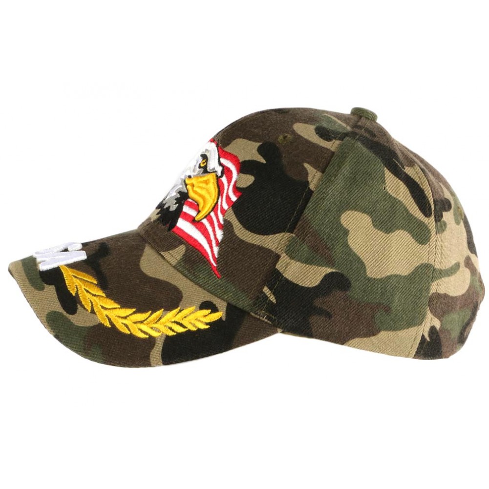 Casquette biker camouflage vert armée brodée tête d'aigle dans un drapeau américain, casquette baseball homme et femme avec visière arrondie avec broderie USA dans des branches de lauriers dorées style motard et hotroad par Nyls Creation