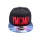 Casquette Snapback YMCMB avec top noir et lettres YMCMB brodées rouge, la visière est imprimée façon cosmos dans les tons bleus. On retrouve l'attache classique de réglage à l'arrière de la snapback en matière plastique noire.