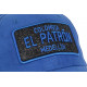 Trouvez une casquette El Patron Medellin bleue en coton façon peau de daim lumineux et souple, casquette Colombia bleue homme et femme mode épurée et coloris classe de la marque SKR, gros patch El Patron bleu en broderie 3D, drapeau colombien sur le côté, visière incurvée tendance, taille réglable.