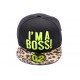 Casquette JBB Couture Snapback Enfant I'm a Boss! Jaune Fluo, top Noir, visière léopard, jusqu'à 8ans