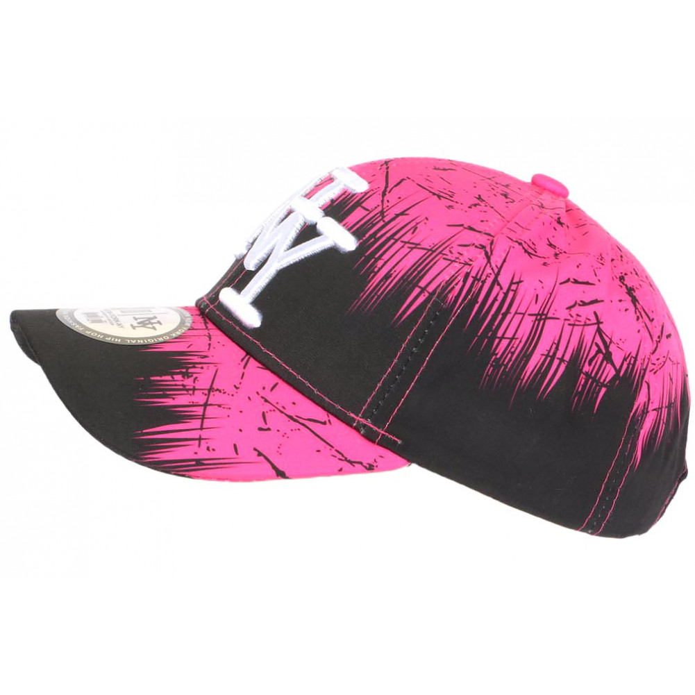 Choisir une casquette baseball rose au visuel streetwear façons tags noirs mode originale, casquette NY femme et homme fashion print fantaisie référence Pink Bad Jungle proposée par Hip Hop Honour, visière incurvée mode, NY blanc 3D en relief, autocollant New York Original, taille réglable.