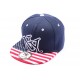 Casquette Snapback de la marque Hip Hop of Honour pour enfant à partir de 8 ans, cette snapback à le top Bleu et la visière façon drapeau USA. A l'arrière on retrouve l'attache de réglage.
