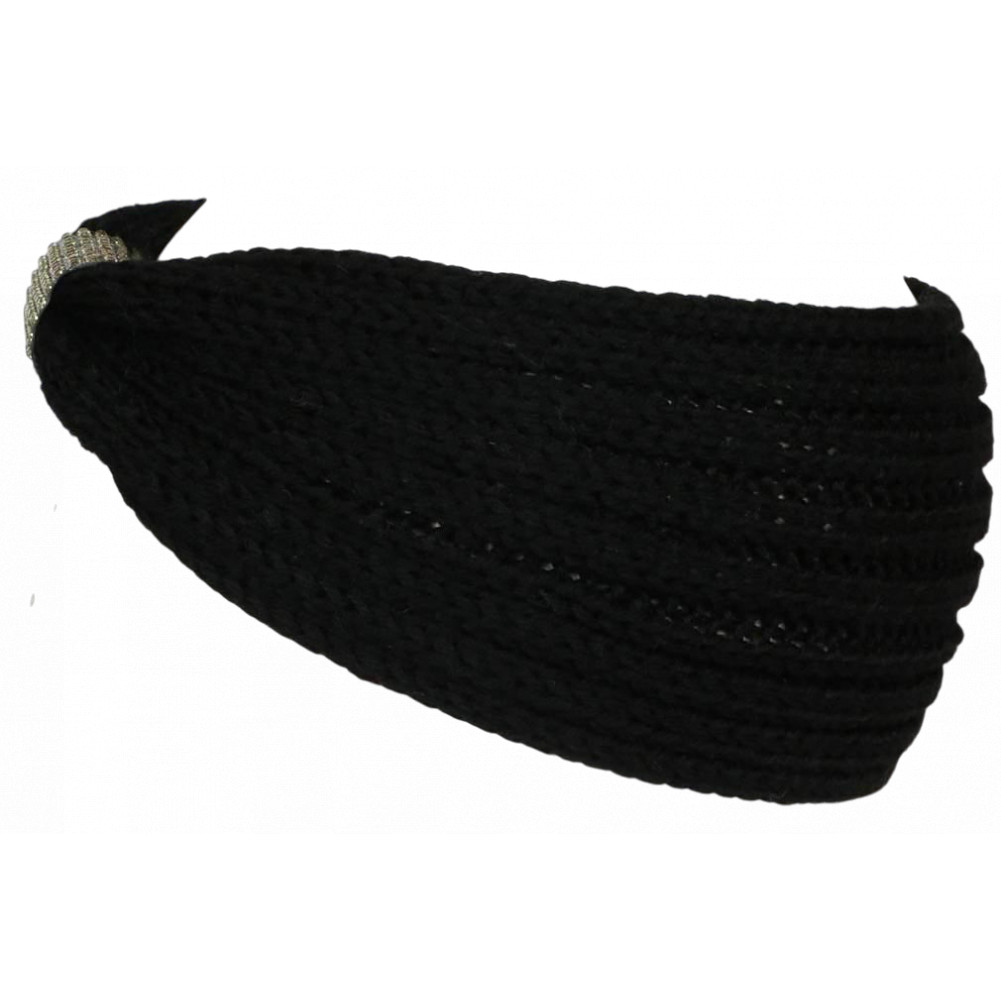 Vente bandeau strass femme noir en laine douce et souple pour un confort chic et tendance référence Dark Esfye de la marque Nyls Création, bandeau cheveux strass en laine noire en maille chevrons et volutes simples mode city classe pour un hiver chic, tendance et lumineux. Headband Laine pas cher taille unique fibres extensibles.