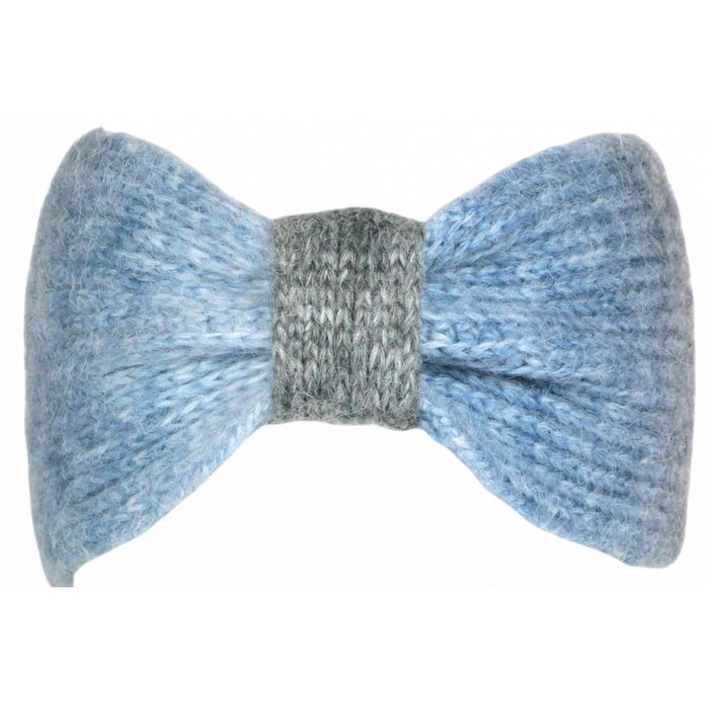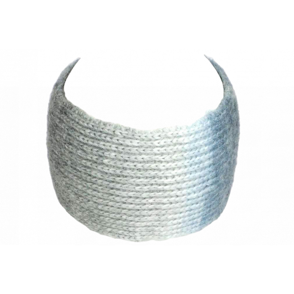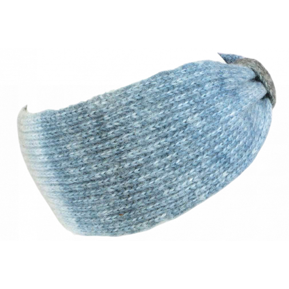 Vente en ligne bandeau femme gris bleu dégradé en laine douce et souple pour un confort chic et tendance référence Sky Ellye de la marque Nyls Création, bandeau cheveux laine bleu gris design en noeud chapelier ligne city classe pour un hiver mode et coloré. Headband Laine bleue pas cher taille unique fibres extensibles.