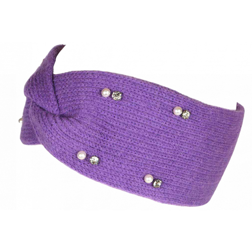 Découvrez en ligne le bandeau femme permet et cristaux violet en laine douce et souple pour un confort classe et lumineux modèle Purply Merry de la marque Nyls Création, bandeau cheveux laine violette avec strass et perles brillantes design en noeud chapelier tendance et chic pour un hiver mode. Headband perles pas cher taille unique fibres extensibles.
