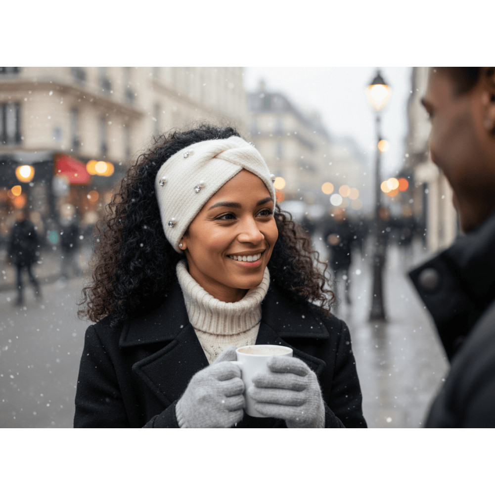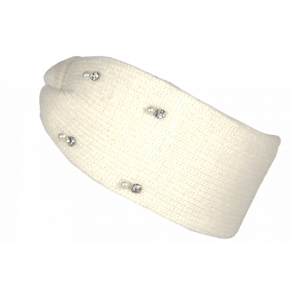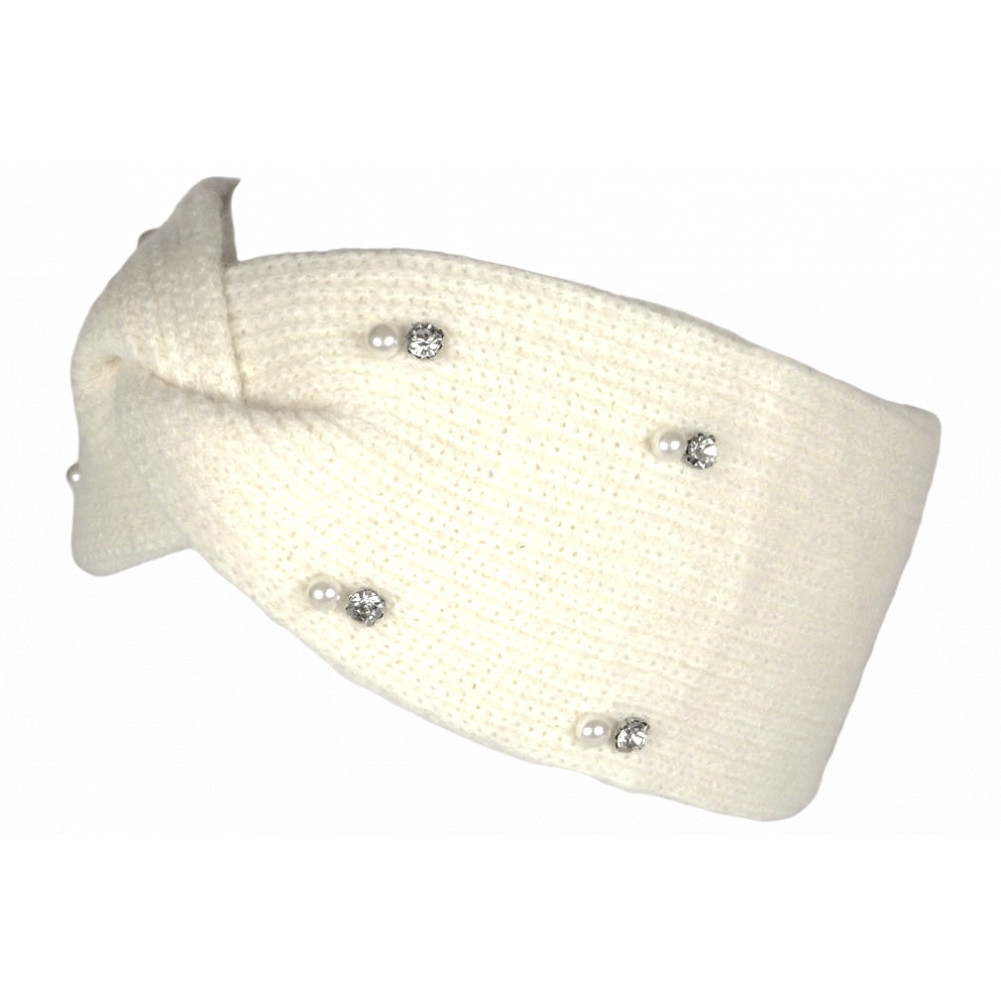 Chic et tendance : Un bandeau pour femme blanc cassé orné de perles et de cristaux pour ajouter une touche de glamour à vos tenues hivernales.