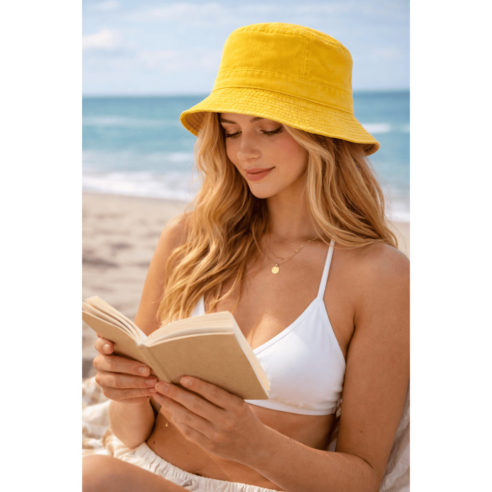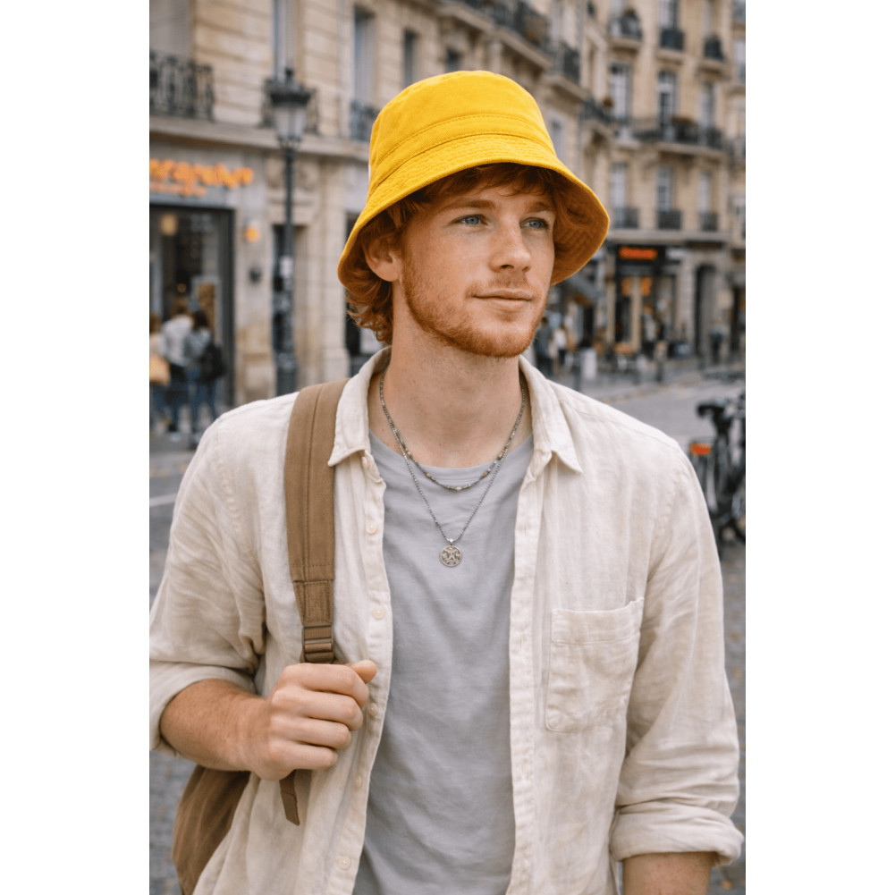 Le chapeau bob jaune est également idéal pour l’été, les festivals ou les vacances. Il complète parfaitement une tenue légère tout en ajoutant une signature visuelle forte.