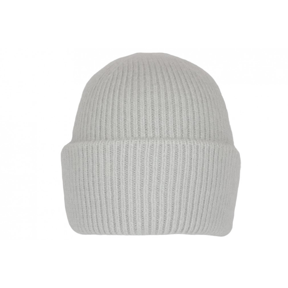 Acheter en ligne un bonnet laine angora gris clair à revers classe et très confortable modèle Clear Antje présenté par Nyls Création, bonnet gris homme et femme pas cher en laine douce pour un look hiver tendance et lumineux, jolie finition tradition avec des fines mailles Jersey épaisses.