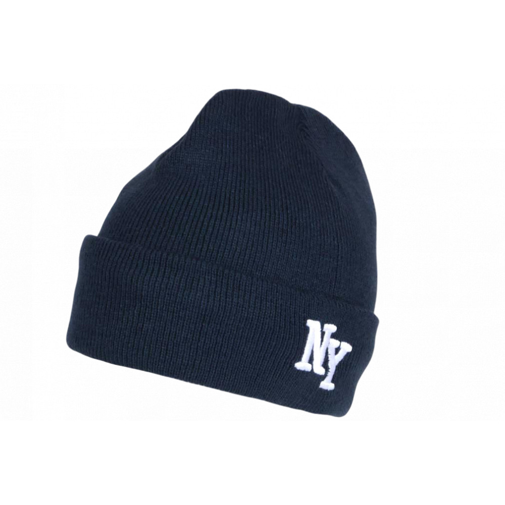 Cherchez en ligne un bonnet New York bleu en laine à revers fines mailles souples, broderie New York blanche modèle Navy Aurora de marque Nyls Création, bonnet NY homme et femme style headwear streetwear avec doublure en polaire chaude et confortable. Beanie NY bleu tendance et classe confortable et facile à porter.
