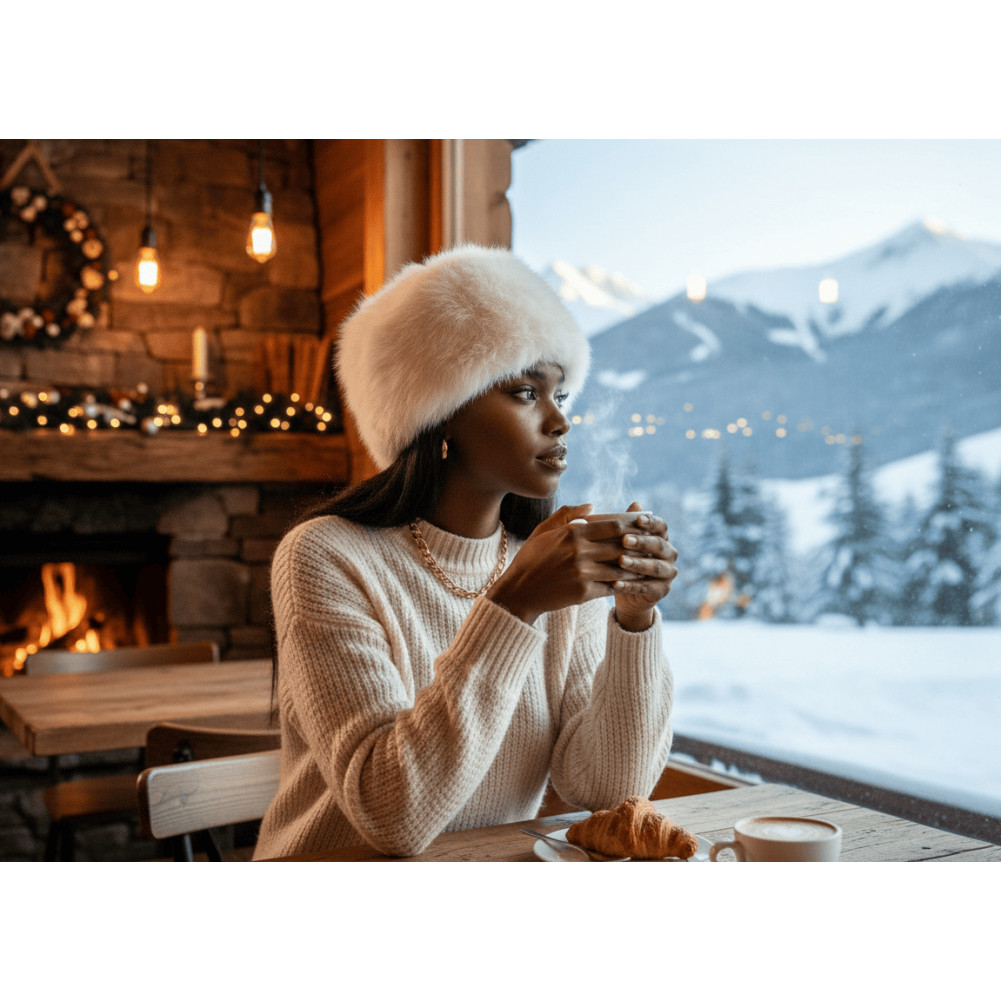 Plus légère qu’une chapka traditionnelle, cette toque en fausse fourrure blanche enveloppe la tête tout en restant féminine et sophistiquée. Son design intemporel rappelle les toques russes vintage, revisitées dans une version moderne et tendance.