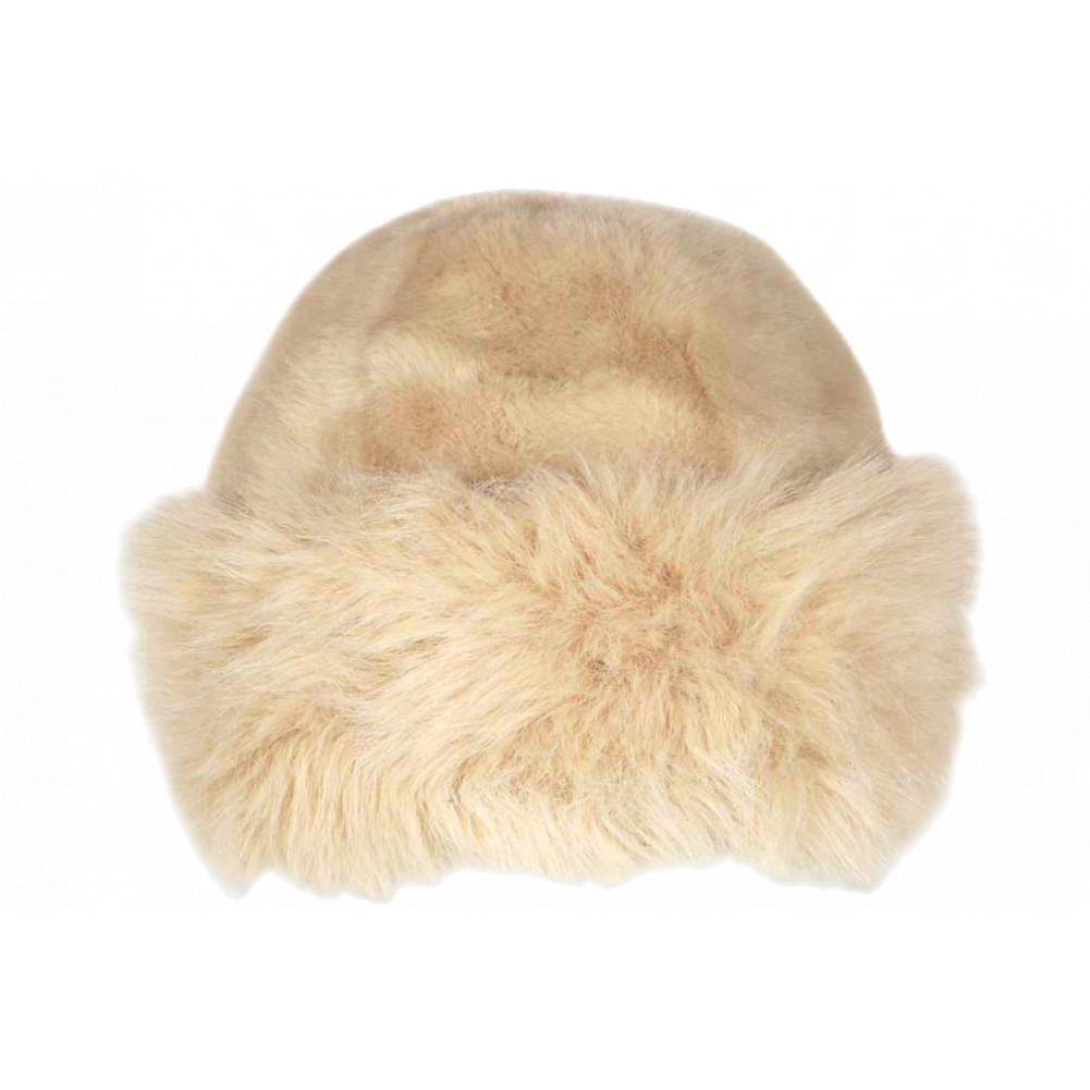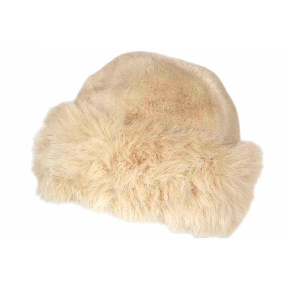 Achat en ligne une toque fourrure beige chaude avec doublure en plaire douce pour un hiver chic modèle Ivory Masha de marque Nyls Création. Chapeau femme en fausse fourrure pour un d’hiver chaud et élégant, doux et confortable. Bonnet fourrure beige pas cher design chic avec bord large mode cocooning au féminin.