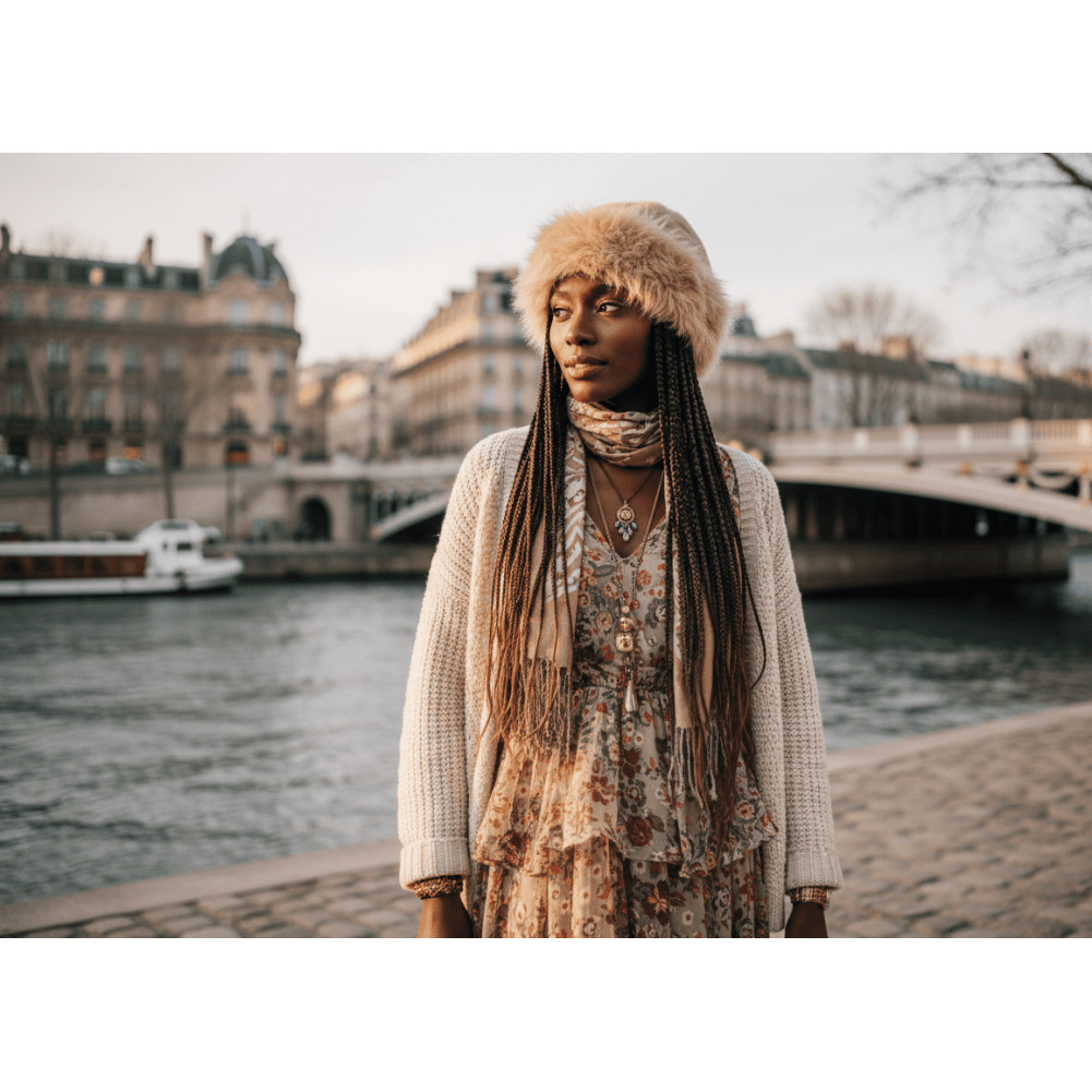 Plus qu’un simple bonnet fourrure beige, c’est un véritable accessoire headwear mode d’hiver: chaud, doux et plein de charme. Son coloris beige clair illumine le visage et s’accorde aussi bien avec des tenues sobres qu’avec des looks plus colorés.