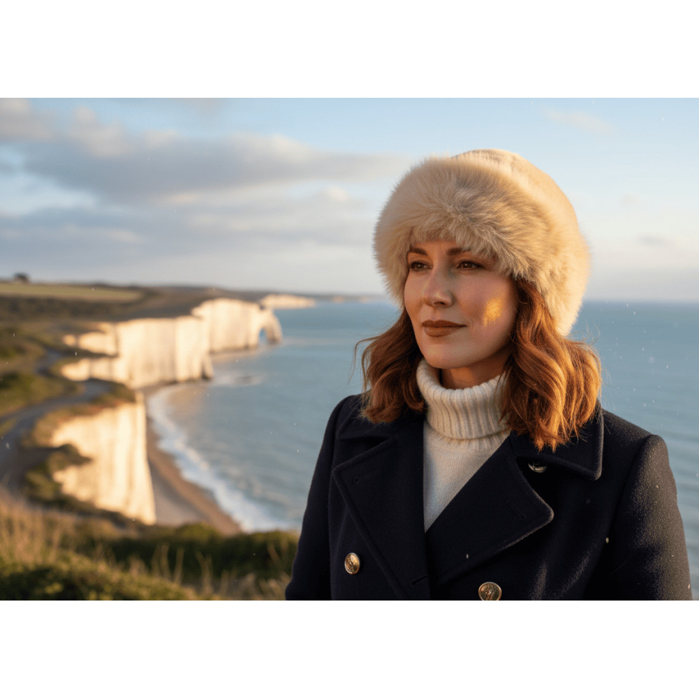 Idéale pour les journées froides, cette chapka fausse fourrure chaude se porte avec un manteau de laine, une doudoune chic ou même une veste de ski pour un style chapeau fourrure beige moderne et élégant.