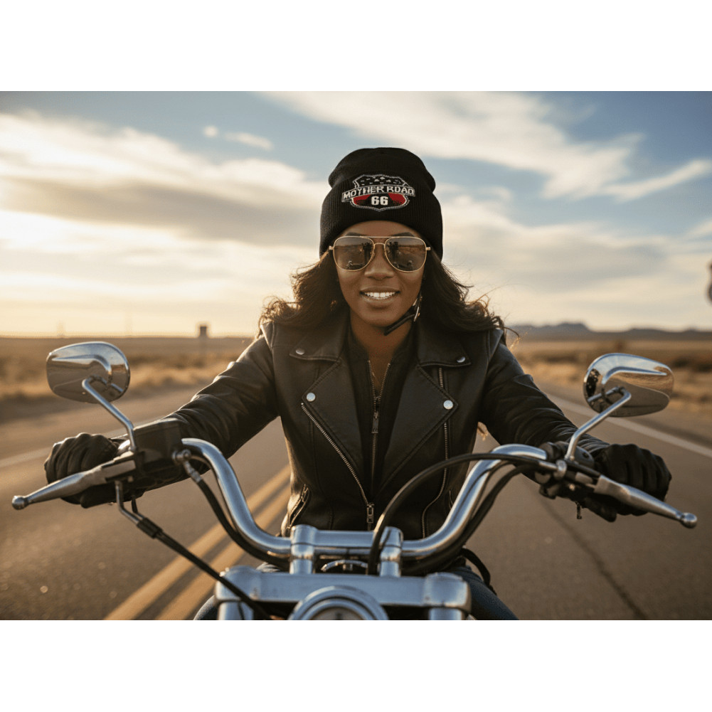 Son design noir contrasté par le logo Mother Road 66 en rouge et blanc fait de ce bonnet biker un incontournable pour ceux qui aiment les accessoires de caractère. Il convient parfaitement aux hommes recherchant un bonnet stylé, pratique et durable.