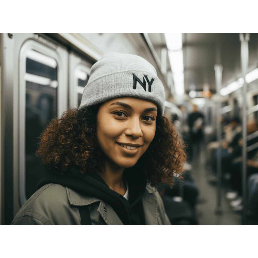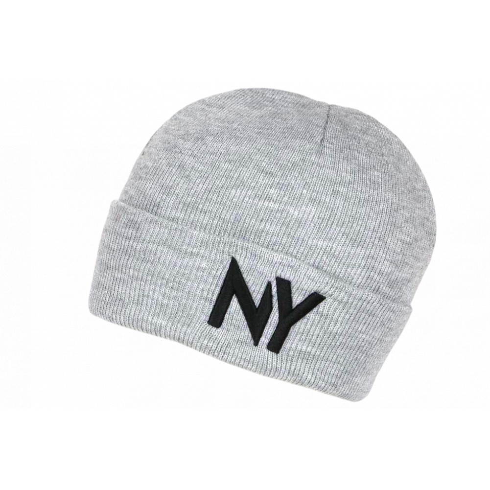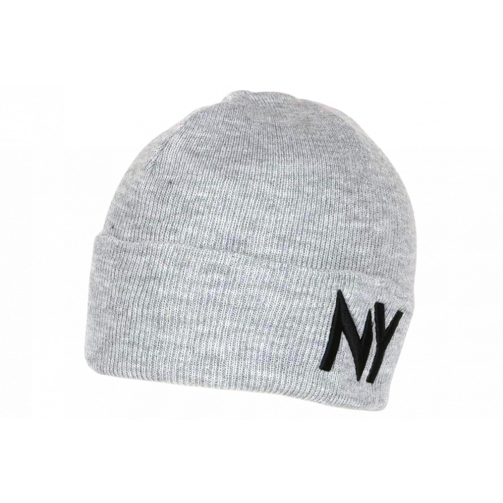 Vente en ligne un bonnet New York gris logo noir en 3D design streetwear modèle Silver Yrton marque Nyls Création, bonnet NY homme et femme en laine design fashion, tricot souple en fines maille de laine pour un confort chaud et classe, bonnet streetwear pas cher en laine acrylique.