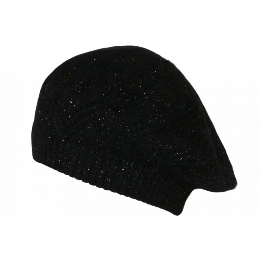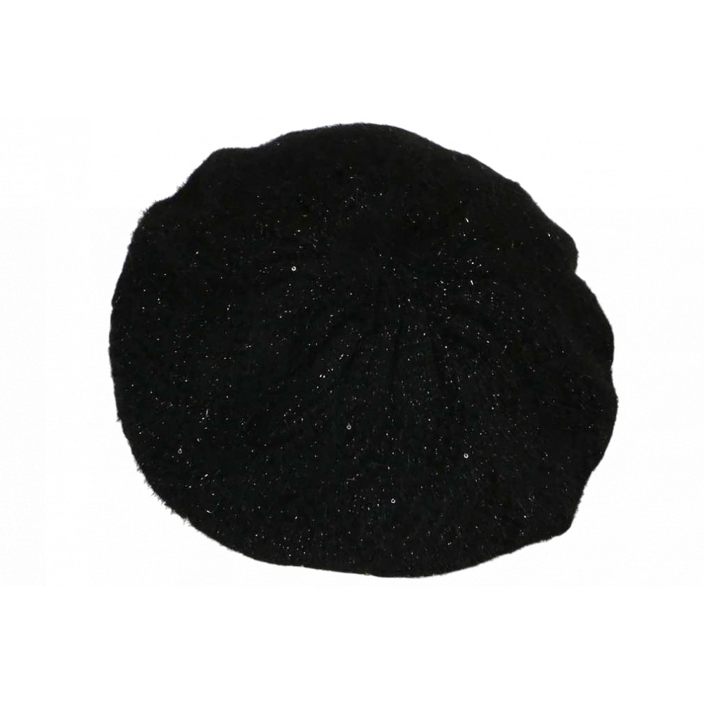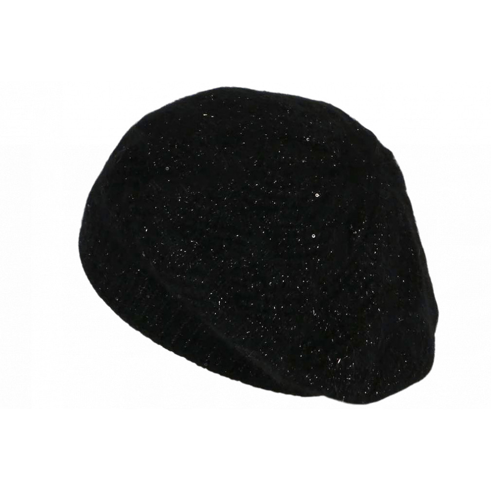 Vente bonnet laine angora noir classe design paillettes tricot en jersey ajouré et volutes aux fines mailles souples confortables modèle Black Angiola de marque Nyls Création, béret noir pour femme pas cher en laine angora douce pour une mode hiver tendance et prestige, belle fabrication chapelière tradition, diamètre du disque (extérieur) 29cm.