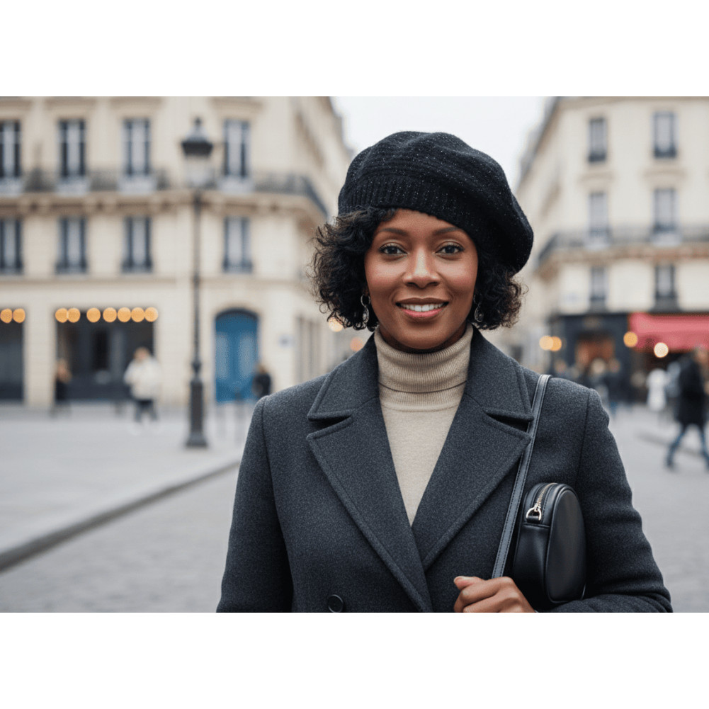 La couleur noire s’accorde facilement avec les manteaux sombres, les doudounes colorées ou les écharpes neutres, faisant de ce béret en angora un accessoire polyvalent. Grâce à sa forme souple et à sa taille unique, il s’adapte naturellement à la majorité des tours de tête, procurant un porté confortable tout au long de la journée.