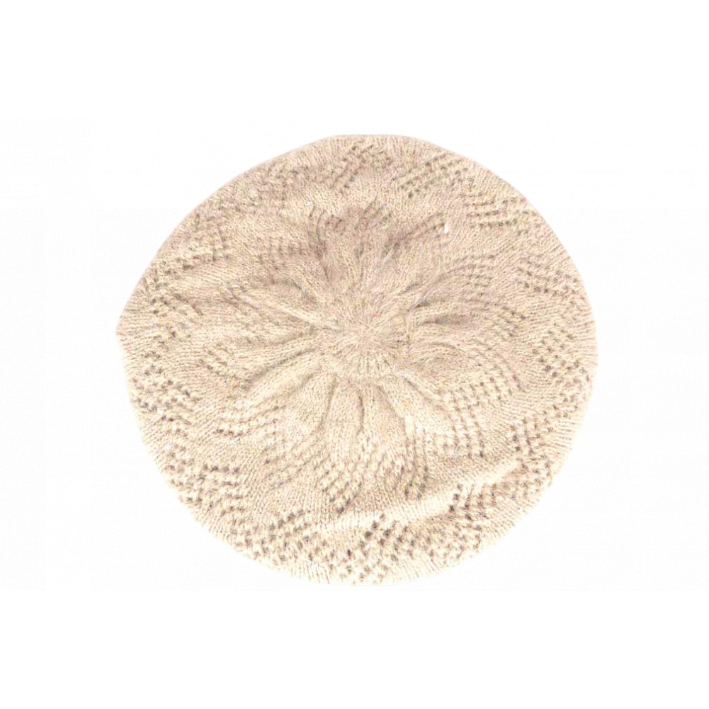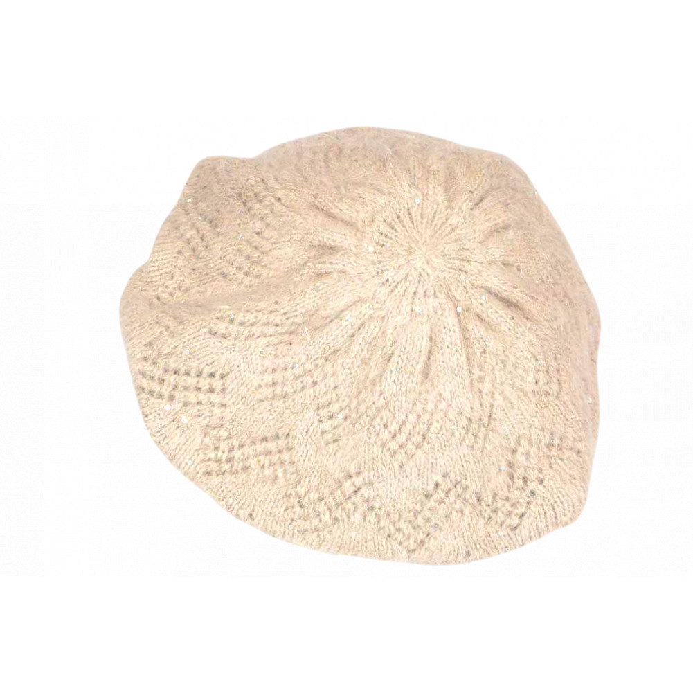 Achat bonnet laine angora marron classe design paillettes tricot en jersey ajouré et volutes aux fines mailles souples confortables modèle Sand Angiola de marque Nyls Création, béret marron pour femme pas cher en laine angora douce pour une mode hiver tendance et prestige, belle fabrication chapelière tradition, doublé en polaire, diamètre du disque (extérieur) 29cm.