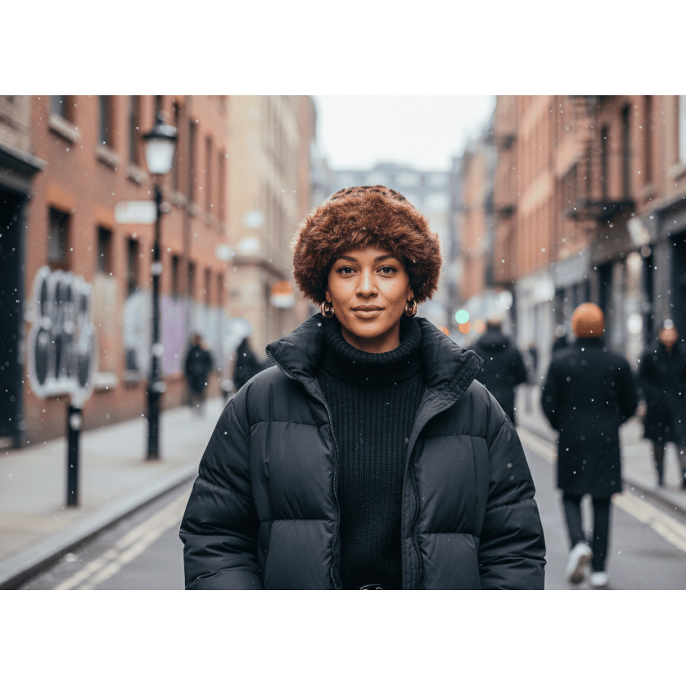 Ce modèle s’inscrit entre la toque hivernale, la chapka moderne et le chapeau d’hiver en fausse fourrure, offrant un mélange de chic rétro et de tendance actuelle. On peut le porter légèrement incliné pour un style mode, ou bien bien enfoncé sur la tête pour maximiser la chaleur en cas de vent ou de froid intense. Sa coupe souple s’adapte à la majorité des tours de tête, tout en conservant son volume et sa structure.