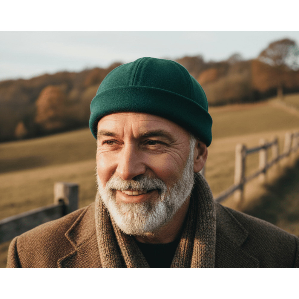 Laissez-vous séduire par l'alliance parfaite de la tradition maritime et d'un coloris ultra-tendance. Notre bonnet docker en laine vert canard est l'accessoire qui réveille une tenue. Cette teinte riche, à la lisière entre le bleu profond et le vert forêt, apporte une touche de caractère immédiate tout en restant très facile à assortir avec du gris, du marine ou du camel.